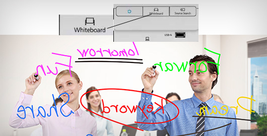 內置白板 開機即可進入白板功能,輕輕一點,即能將投影屏幕更換為電子白板。(在沒有任何輸入信號源的情況下,也可以使用白板模式)