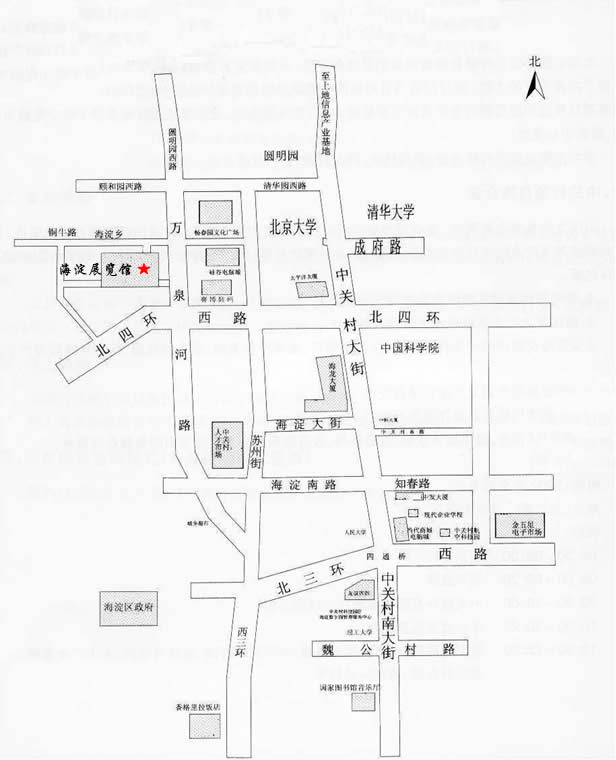 北京海淀展覽館 地 址:北京市海淀區新建宮門路2號(西北四環萬泉河立交橋西北角,北京大學西側)