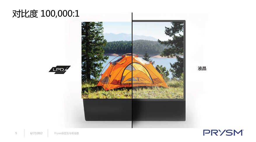 prysm技術:Laser Phosphor Display(LPD)技術以下簡稱LPD,不基于已有的任何一種顯示技術、圖像處理芯片及顯示芯片。PRYSM(PRYSM溥美)公司具有芯片級的核心知識產權。