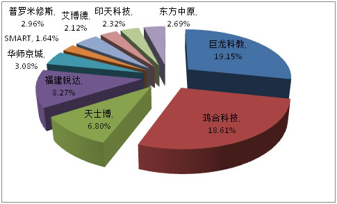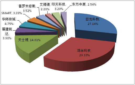 如今中國的教育信息化正處在全面推進階段,對于教育顯示設備、it設備,尤其是液晶觸摸大屏幕產品的需求呈現爆發式增長,而目前市場上電子白板在教育行業的裝板率還不足4.5%,尚有極大的市場空間。盡管高階智能手機市場日趨飽和,平板電腦市場面臨同質化困擾,但觸控技術為智能型設備人機互動的重要界面,依然有望保持增長勢頭。隨著相關產品日漸成熟及消費者觸控行為習慣的養成,市場需求將進一步擴大。2013年下半年,我們有理由相信觸摸一體機將繼續馳騁教裝市場,成為教裝行業新的熱點