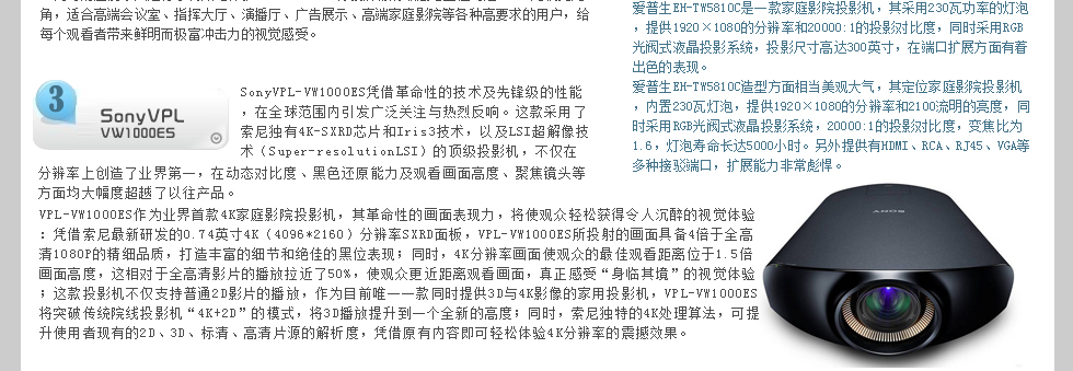 4K的畫質加上3D的效果顯然會顛覆觀眾們對高清電影的傳統概念,擁有4K分辨率的影片明顯要比普通3D多出更多細節,完全消除了點陣像素的顆粒感,其寬容度也更適合人眼接受范圍。根據“十二五”規劃,未來五年內影院屏幕總數將提升至2萬塊,巨大的新增市場將為4K放映系統提供廣闊的發展空間。分析稱,4K影院將在未來5年的中國新增數字銀幕中占據90%以上的市場。相信幾年以后,4K電影將成為觀看大片的終極選擇...... |