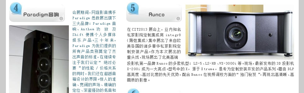 作為國內唯一的以頂級家庭影音、全宅電子集成、定制安裝與智能解決方案為主的大型展會,第三屆中國影音集成科技展CIT2013已經于6月6-8日在北京國家會議中心隆重舉行。作為我國北方地區每年一度的音響界與定制安裝行業的盛事,CIT2013展會受到了多方關注,在頂級私人影院與定制安裝逐步成為影音行業發展潮流的今天,CIT2013匯聚了眾多國內與國際頂級影音娛樂、智能控制...... |