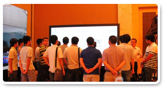 | 在體驗及晚宴時段里,大家在對霸氣磅礴的投影和氣勢恢宏的大屏拼接驚嘆之余,亦詳細地對比著參數,同時相互討論著這些產品可能帶來精彩的應用和無限商機! |