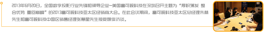 ,隨著中國經濟的崛起,市場地位也日漸凸顯出來,中國銷售團隊有信心把富可視的投影產品推介給中國更多用戶,我們對富可視在亞太地區的銷售目標和市場戰略充滿信心,當然我們對中國市場更是信心滿滿! |