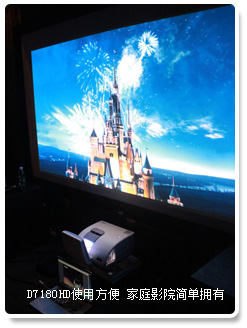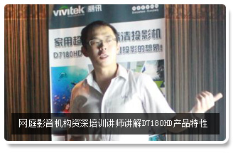 同時(shí),網(wǎng)庭影音機(jī)構(gòu)資深培訓(xùn)講師也結(jié)合產(chǎn)品演示為大家介紹了Vivitek麗訊D7180HD的產(chǎn)品特點(diǎn)。他表示,D7180HD作為全球首款家用全高清藍(lán)光超短焦投影機(jī)也是Vivitek麗訊另一款重量級(jí)家用產(chǎn)品。D7180HD擁有絕佳的投射比,超短焦的特性可以在34公分的距離投射出87英寸的全高清超大畫(huà)面,而且占地面積小,無(wú)需吊裝,組建方便,絕對(duì)是為空間有限的家庭用戶量身定做。而且D7180HD擁有3400流明的亮度和2500:1的對(duì)比度可以投射出全高清分辨率畫(huà)面,效果卓越。