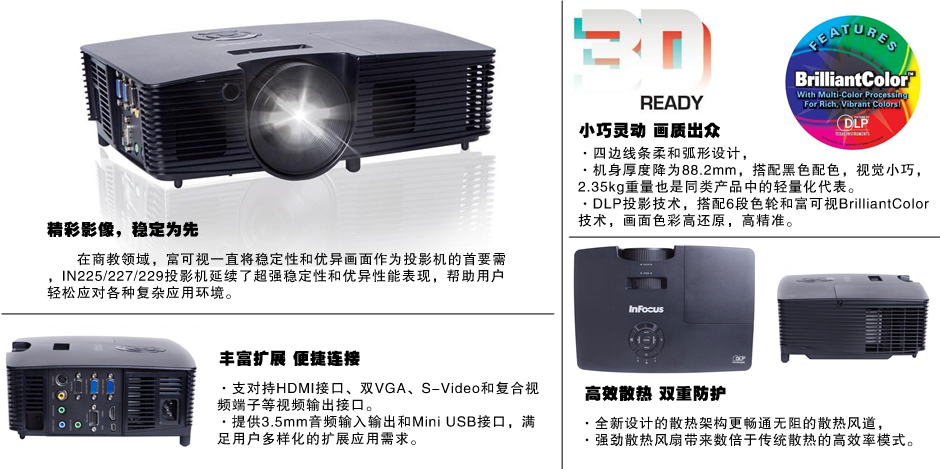 富可視的產品除了世界上被最廣泛認可的數字投影機,包括集顯示、標注、互動和遠程會議于一體的“全參與,全互動”的大型互動式觸摸平板產品-mondopad,此外還包括,可視電話以及大屏觸摸一體機等互動性產品,而富可視投影機產品幾乎覆蓋所有應用領域。