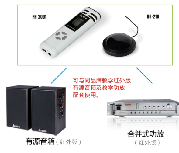 高靈敏度單一指向性駐極體電容式無線話筒,同一個無線麥克風能在不同的接機上使用: 紅外光信號不串頻、不穿強、抗干擾性強、無需對頻、調頻、即開即用;綠色無輻射、擴音清晰; 液晶界面顯示,電子音量和電子開關機; 內置激光筆,方便教學; 內置大容量可充電鋰電池,話筒電池充電后可連續使用4-6小時; 內置高音質咪頭,可外接3.5mm接口頭戴式或者領夾式咪頭,可按喜好選擇胸掛式吊繩,佩戴更方便; 紅外接收半徑>=20米; 外置超廣角高靈敏360度全向接收無死角; 紅外傳感器HG-210; 接收器標配10米信號線(連接方式為接線夾,易于安裝,客戶可按現場環境要求自行更改線材長度,最長20米),兩組信號接收接口,接收范圍更廣; 1路紅外無線話筒頻點(增加接收模塊可擴充至4個話筒頻點).