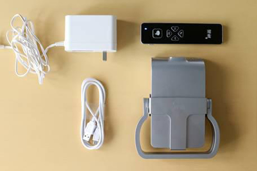 神畫X1增強版隨身智能影院的包裝簡單大氣,里面有數據線、電源線、神筆(指示遙控器)、投影支架(含移動電源)等配件。神畫X1增強版從外觀上來看,與神畫X1并沒有太大的不同,區別主要在于新增了蓄電池和支架,與其他的微型投影儀相比起來,神畫X1增強版顯得更為小巧,便于攜帶。銀色的配色,略帶弧線長方形機身,看上去簡潔大方。