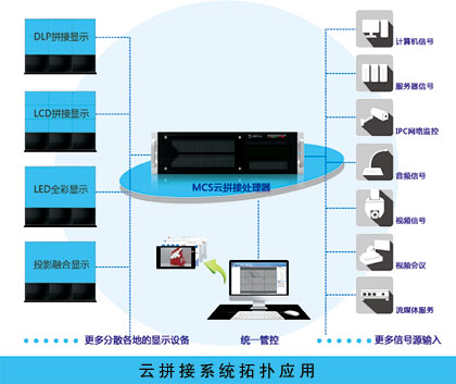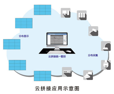 云拼接,是在網絡技術背景下誕生的,基于云計算技術的拼接顯示系統。是以云拼接控制器為核心設備的,通過云計算技術,而融合各種傳統軟、硬件設備的綜合拼接處理系統。