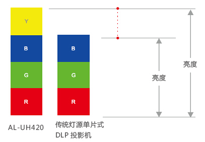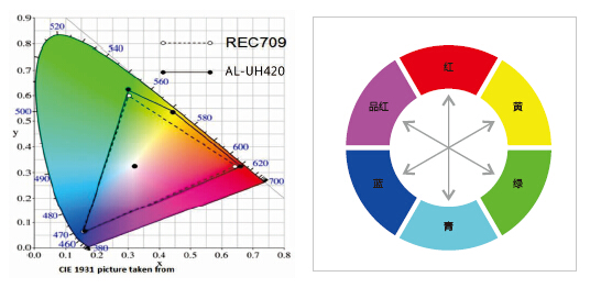 多出一段可以用于顏色顯示的Y 段。因此,AL-UH420 的顏色亮度比同樣亮度