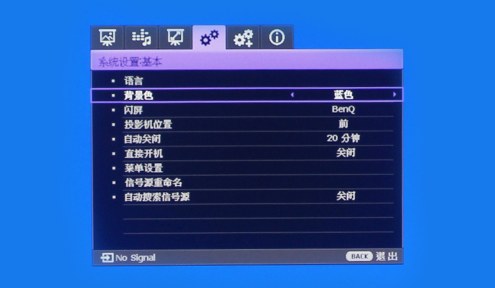 此處的背景色也可以設(shè)置成紫色,還可以設(shè)置多久沒有信號源就自動關(guān)閉,避免耗損能源