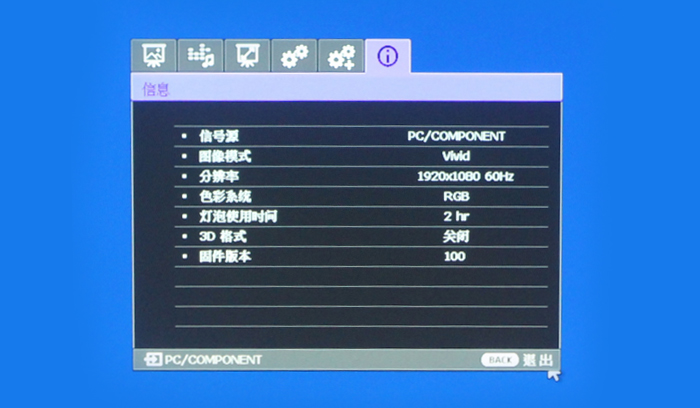 信息一欄顯示的是投影機本身的參數(shù)。
