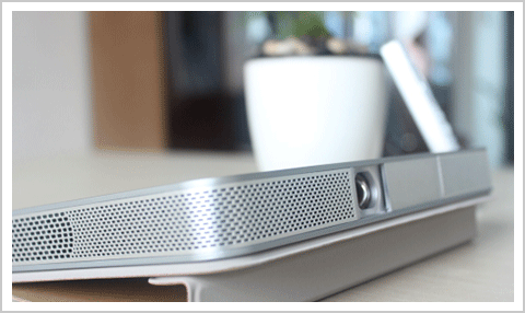 為了使便攜式移動體驗更加完美,慧投B5設計了滑蓋來保護光機鏡頭,避免放進包里時被其他物品劃傷。不同于普通投影機鏡頭保護蓋的是慧投B5有著另外的功能。當投影機處于開機狀態,將鏡頭輕輕的滑動關閉,即可實現迅速關機,這是繼遙控按鍵關機、機身按鍵關機外的第三種關機方式。 |