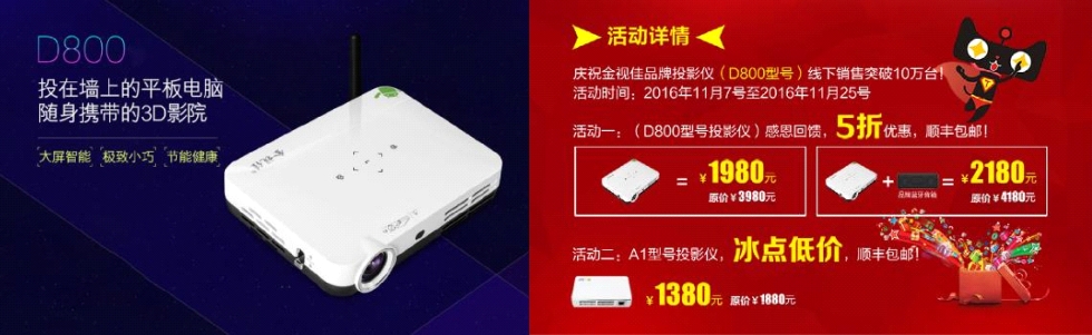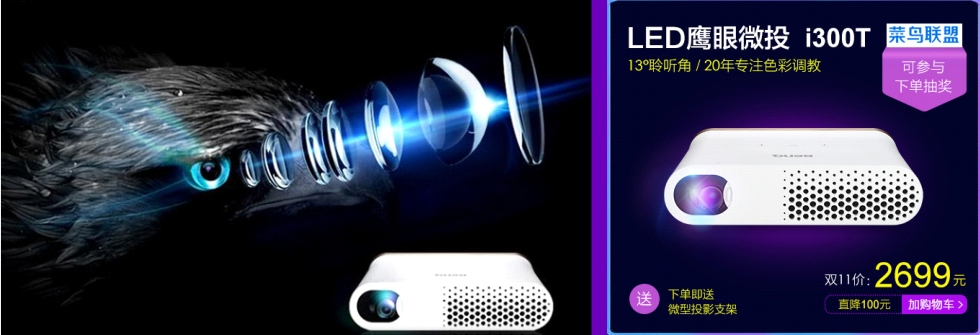 | 每年的雙十一,都是各大品牌提高曝光量、增加產品銷量的好時機,眾商家紛紛投入到促銷中以搶占優勢地位。新興的智能投影行業也如此,行業大佬們為用戶奉上各種大力度優惠,確保大家可以在雙十一盡情盡興地購物,各位喜歡智能投影的朋友們千萬不要錯過了! | |