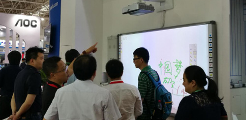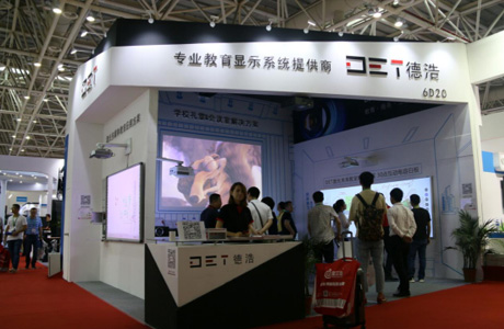 在多媒體教室的應用方案中,DET則展示了超短焦1080P的DET-C5和93寸電容白板。該方案完美的取代了傳統的黑板,杜絕粉塵對學生、老師造成的危害,更支持全3D,增加了師生間的互動和課堂樂趣。
