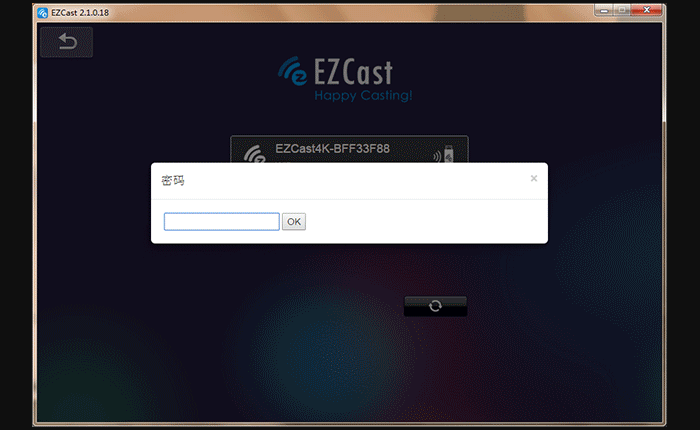 連接成功將會(huì)出現(xiàn)以上頁(yè)面,生成EZCast4K域名以及密碼,密碼用于其它系統(tǒng)登錄。