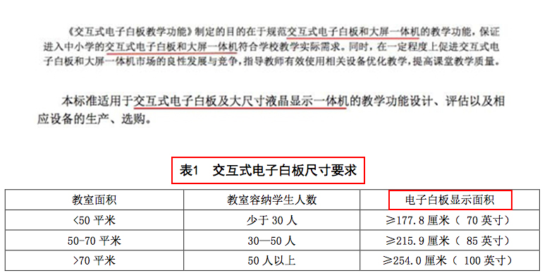 從教育部相關文件看,條例中明確指明交互式電子白板和大屏一體機兩者的要求,與二者之間尺寸的標準,兩者之間存在本質上的區別,不可交互相談。
