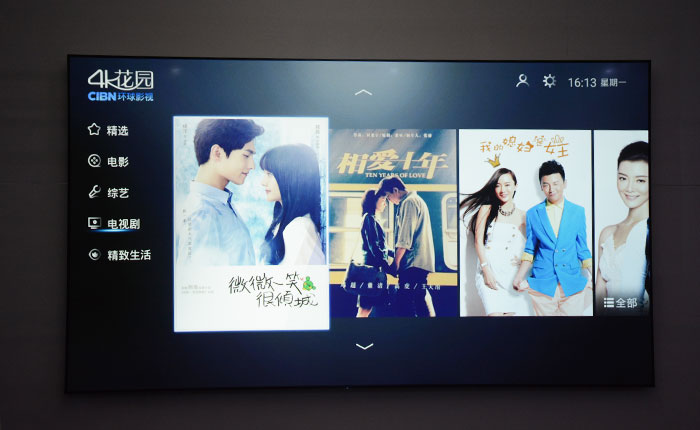 New1與激光投影機在技術(shù)方面的最大不同之處在于功能的多樣性,除了擁有激光投影機所具備的卓越畫面塑造能力之外,絕大部分都搭配了音頻系統(tǒng)、智能系統(tǒng)、無線網(wǎng)絡(luò)與藍牙連接功能,而三頭牛的百寸4K激光電視搭載了專業(yè)廠商Mstar電視芯片,基于ARM Cortex-A53架構(gòu)的64位四核處理器,Mali 450 MP4四核GPU圖形芯片,支持H.264、VP9、H.265等全4K格式硬解碼,支持H.265 4K2K@60Hz 10bit超高清解碼,支持3D視頻,支持高動態(tài)范圍HDR,支持最新的HDMI2.0a規(guī)格,支持所有4K片源等,此外Santnew激光電視擁有10000+部電影、20000時電視劇,3000集綜藝,30000集動漫等豐富的內(nèi)容會跟隨系統(tǒng)的升級不停的更新。而與其它激光電視的不同之處就是在4K資源上與4K花園牽手,給用戶帶來更豐富的4K資源,讓用戶盡享高清視界。
