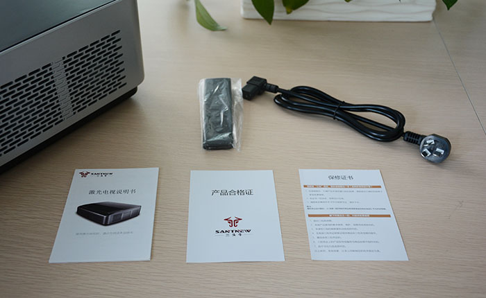 配件方面,New 1 走簡約而不簡單輕便路線,遙控器和電源線,另外就是說明書,產(chǎn)品合格證以及保修證書。