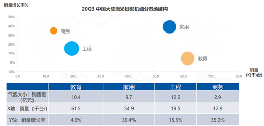 2020年從整體市場環境來看,以智能投影、微型投影、激光電視為主的消費類家用投影,在產品創新中已經居于主體地位,呈現出技術多元、形態多元、應用多元的特點,并尤其成為新興品牌的市場殺手锏,扮演了投影產業增量的關鍵支撐角色。2020年家用投影市場進一步突出性能升級、價格降級的雙主線,引領家用投影行業走向更廣闊的藍海市場。