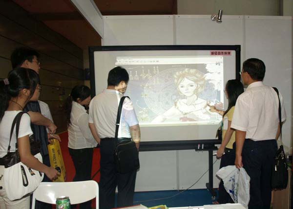 在第三展館的光電平板顯示展區(qū),記者看到深圳區(qū)艾博德科技有限公司給參展朋友帶來了采用紅外觸摸技術(shù)的專業(yè)交互式電子白板,該產(chǎn)品在刷新廣告宣傳客戶被動接受的歷史的同時,成為了本次盛會展會的一大亮點。據(jù)悉,目前國內(nèi)只有鴻合和艾博德兩家公司研發(fā)設(shè)計紅外技術(shù)的電子白板。