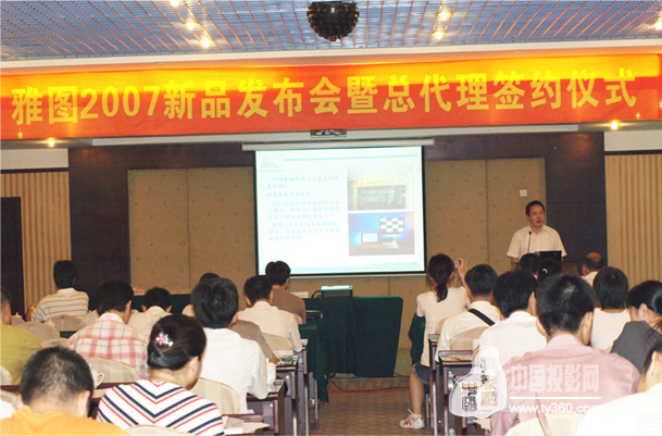 在"雅圖2007新品發(fā)布會暨總代理簽約儀式"上,深圳雅圖營銷中心總經(jīng)理胡鐵民向與會者介紹了雅圖公司發(fā)展的歷程﹑所獲榮譽以及發(fā)展前景。