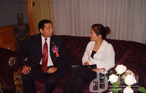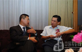 | 多媒體營銷中心前投影產品任霖總經理與TI市場傳播經理sandy交流 | 會議開始前多媒體營銷中心蘇子歡總經理與電子商會王寧會長進行交流 | 長虹電子工程公司楊安澤總經理與大屏幕協會趙漢鼎秘書長交流 |