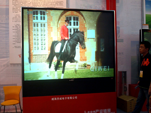 在一號館LCOS產品鏈展區(qū),威海齊威100英寸超大超薄高清液晶光顯電視BT100-90A吸引了不少前來參展的觀眾,超大的畫面、高清晰的的顯示效果盡顯其魅力!